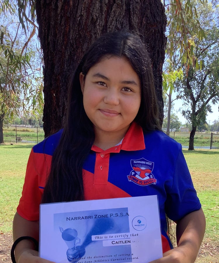 At the Narrabri Zone Athletics Carnival back in Term 3, Caitlen broke the Girls 12-13 Years Shot Put record. Caitlen threw a distance of 8.66m.