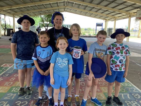 The school proudly supported Footy Colours Day. It is a national fundraising event in September where thousands of Aussies come together, proudly sport their team's colours, and raise money so kids don't fight cancer alone. Well done Narrabri West we raised $210.