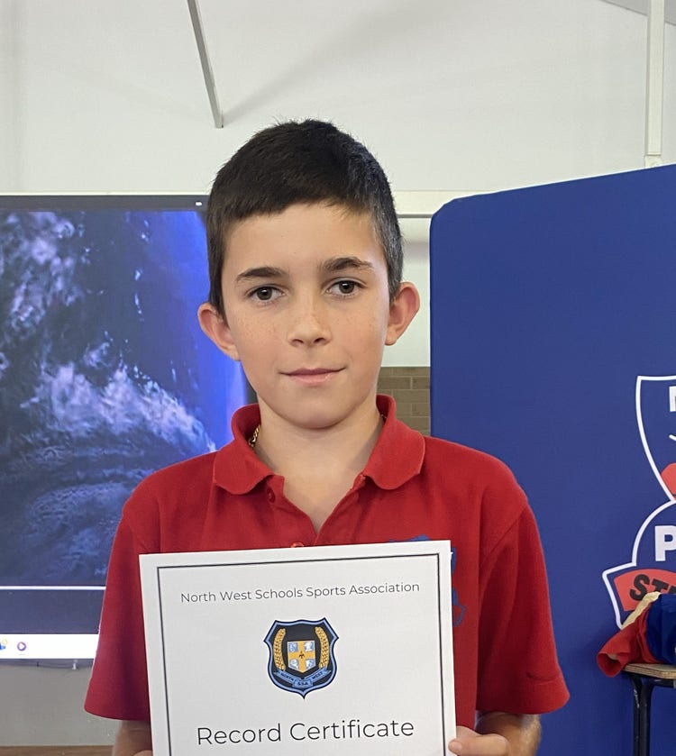 Congratulations to Rory who broke the Junior boys 200m record at the North West Athletics carnival. The carnival was held in Tamworth at the end of Term 3 and Rory set a new time of 30.43 seconds.