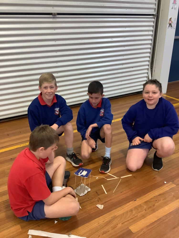 Stage 3 students participated in a STEM Day. In groups, they had to challenge themselves to complete five different activities. The activities included things such as programming cue bots to move around on a course and complete different tasks, make a bridge using cardboard and paddle pop sticks, send messages to each other using Morse Code, design catapults and launch pom poms, and lastly, create a tower out of cardboard and skewers to hold a certain weight. All students thoroughly enjoyed the day and showed off their engineering skills!